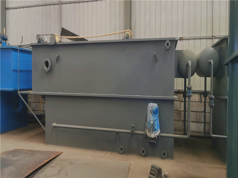 (2)根据水产公司废水的原水水质,废水中所含的动物脂肪油脂的量较高的情况下,单单靠隔油池是无法解决油脂问题的。油脂不解决,后续的处理将会被破坏,为保证处理效果,需对该废水进行除油处理,采用气浮法去除水中动物油脂及悬浮性SS,由提升泵提升至气浮机中,利用气浮法进行分离,可去除绝大部分的动物油脂。从而可减轻后续处理工艺的负荷,同时可减少投药量,节省业主的运营成本。